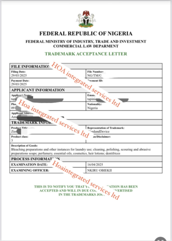 2. TRADEMARK ACCEPTANCE LETTER